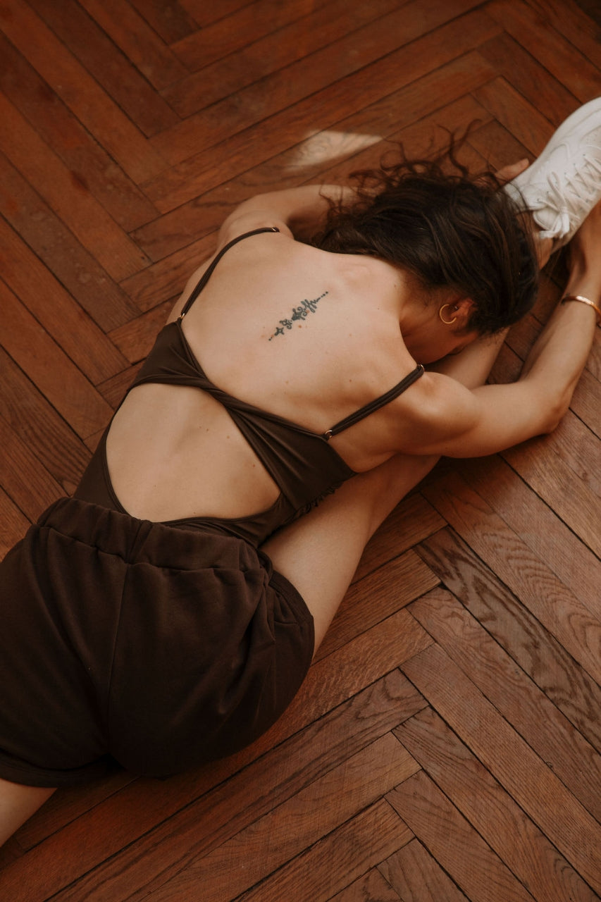 Le body Marine est idéal pour vos cours de Pilates, de yoga pour bouger librement ou simplement pour apporter du glamour à votre tenue. Une pièce essentielle pensée pour suivre le corps dans toutes ses expressions, du tapis de yoga jusqu’au café du dimanche... Dans un joli chocolat qui réchauffe le teint.